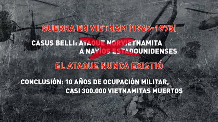 Anteriormente, hace casi medio siglo, EE.UU. utilizó como justificación para intervenir en la guerra civil de Vietnam un presunto ataque a las naves militares estadounidenses que navegaban en la zona. Pocos años después, en medio del conflicto bélico, un exfuncionario del Pentágono revelaría la falsedad de esta información. Una falsedad que se confirmó oficialmente mucho después, cuando se desclasificaron documentos de la Agencia Nacional de Seguridad.