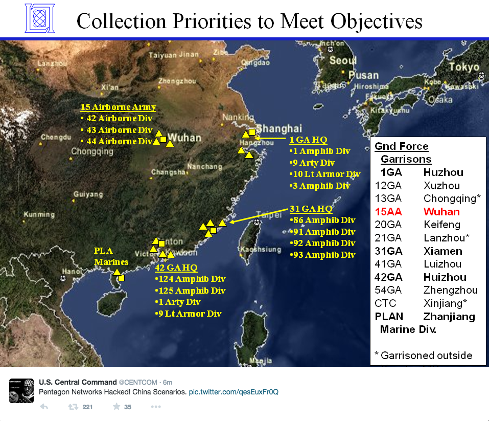 Los 'hackers' han publicado a través de la cuenta del mando mapas de instalaciones militares en China y Corea del Norte. Además, figuran datos personales de los militares estadounidenses.