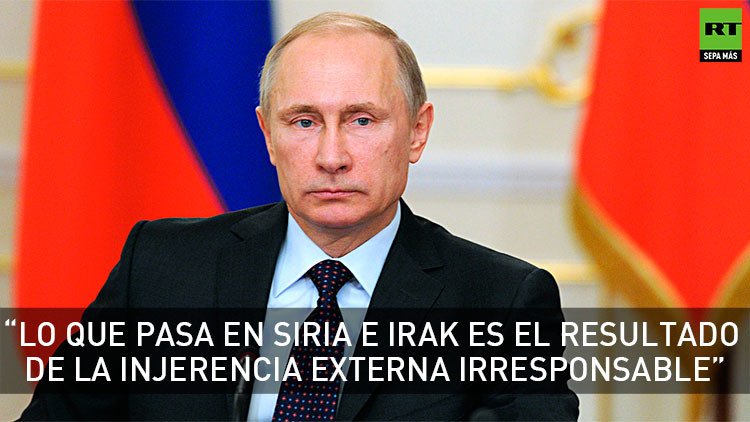 "Lo que está pasando en Siria e Irak es, entre otras cosas, el resultado de la interferencia externa, brutal e irresponsable, en los asuntos de la región, el uso unilateral de la fuerza, así como la doble moral y la manera de dividir a los terroristas en 'buenos' y 'malos'", afirmó el mandatario ruso.