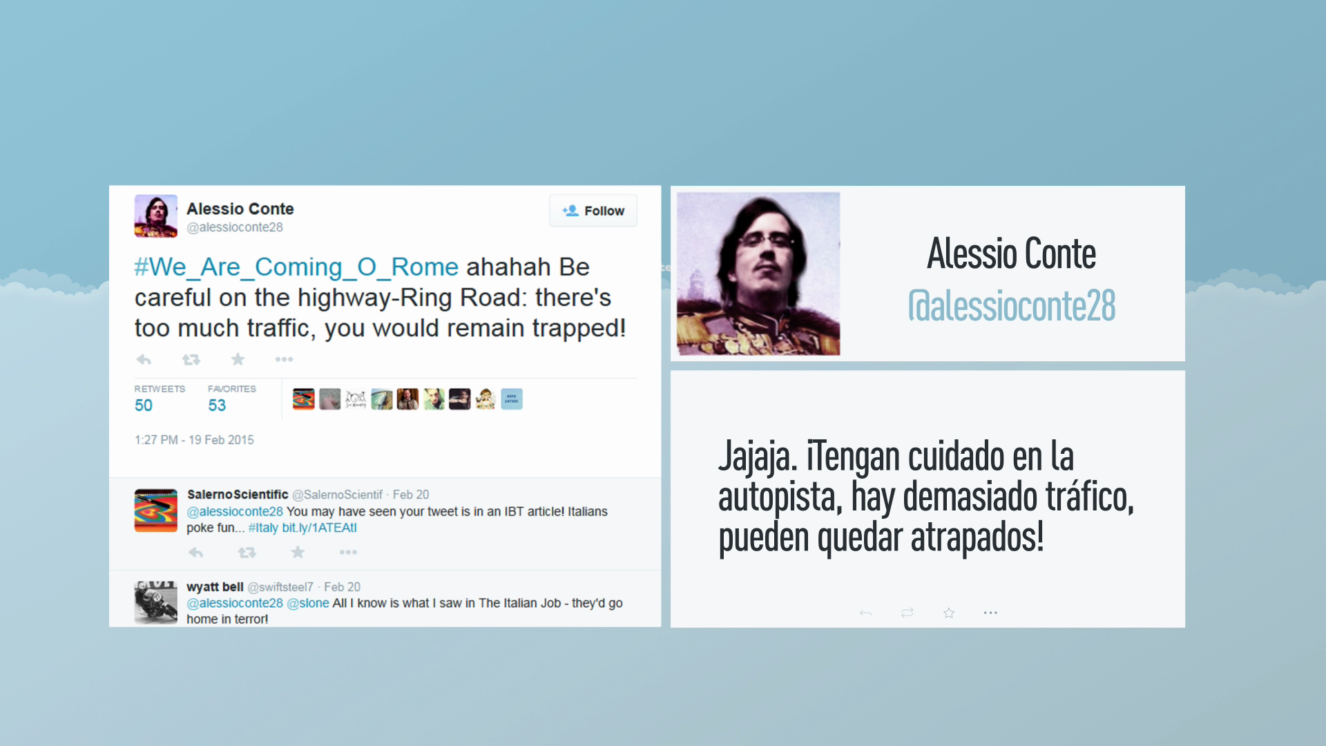 De este modo, algunos advierten al Estado Islámico de que en Italia no hay nada para disfrutar porque el país ya "está destruido por el Gobierno", mientras que otros recomiendan los mejores lugares para visitar, comer o hacer compras de recuerdos en la capital italiana.