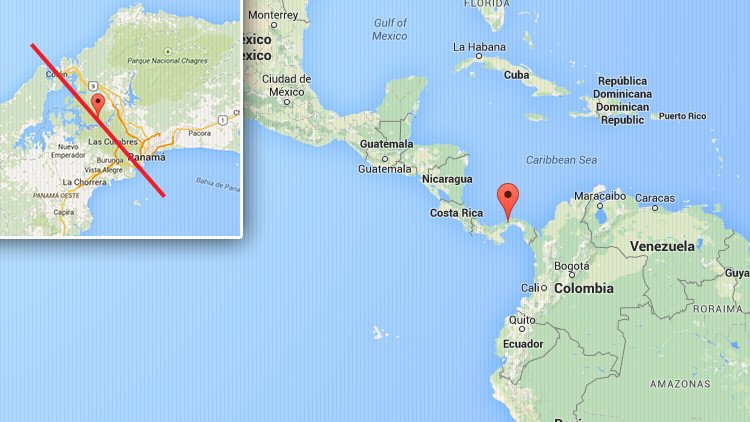 La boca atlántica del canal de Panamá está situada más al oeste que el Golfo de Panamá donde el canal desemboca en el Océano Pacífico.
