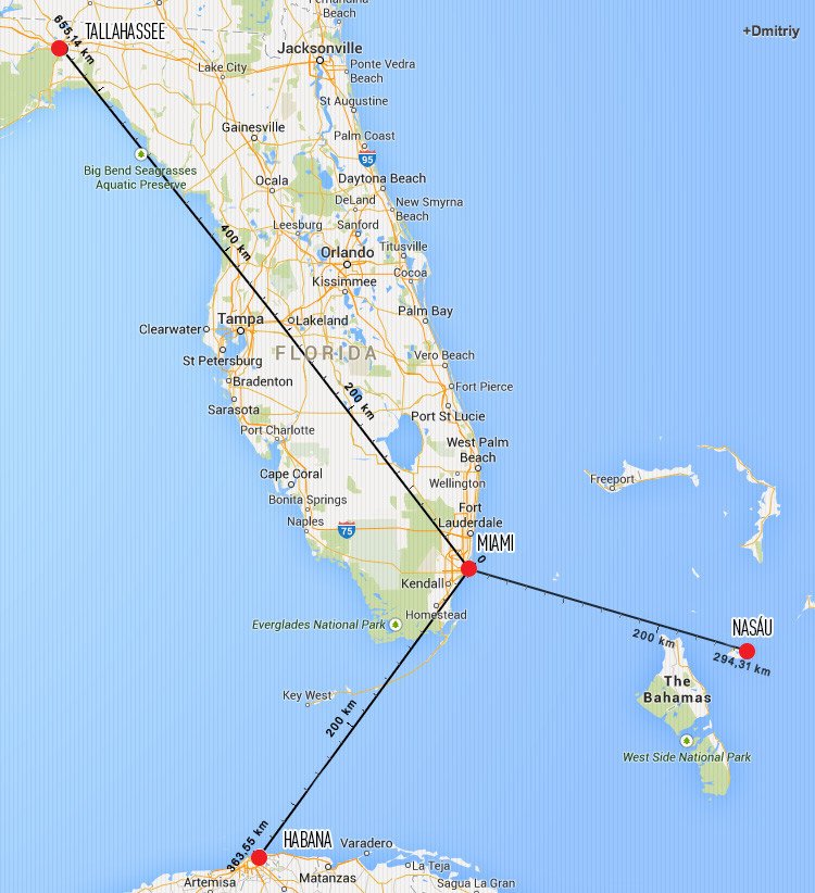 La capital de Hawái, Honolulu, está más al sur que La Habana. La ciudad de Miami, en Florida está más cerca de La Habana y de la capital de las Bahamas, Nasáu, que de la capital de Florida, Tallahassee. Además, Miami está más cerca del canal de panamá, que de Boston, la capital de Massachusetts.
