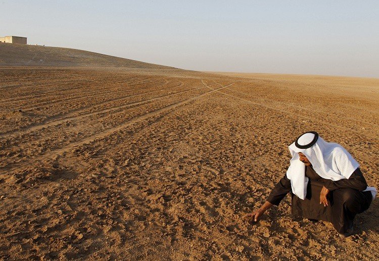 Siria experimentó una grave sequía entre 2006 y 2010. La temperatura media anual en el país aumentó en 1,2 grados centígrados desde el 1990 y la temporada d lluvias disminuyó en un 10%. Todo esto obligó a 1,5 millones de personas de las zonas rurales a abandonar sus hogares y trasladarse a las ciudades superpobladas. Más de 800.000 granjas fueron abandonadas y los precios de los cereales aumentaron en un 27%. La caída de la calidad de vida dio lugar a disturbios sociales que, a su vez, se convirtieron en una de las causas de la guerra civil. Los historiadores incluso comparan la situación actual en el país con la situación en el antiguo Imperio acadio, situado en el territorio de Siria y Mesopotamia. La sequía y los combates también fueron los factores que causaron la caída del gobierno central de ese aniguo imperio, que alcanzó su máximo esplendor entre los siglos XXIV y XXII a. C.