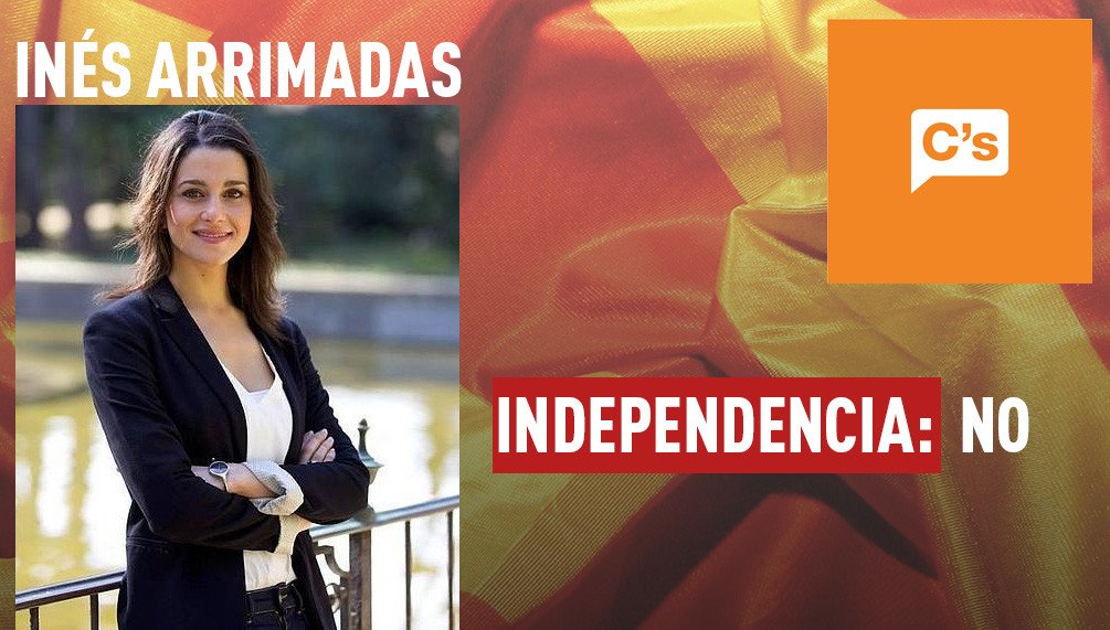 Ciutadans (Ciudadanos). Se convertiría en la segunda fuerza en el Parlament como la alternativa más fuerte al sector independentista. Inés Arrimadas, de 33 años, es la candidata a la Presidencia de la Generalitat. Según su programa los objetivos de la formación, contraria a la ruptura con España, pasan por salir de la difícil situación económica creando empleo y luchando contra la corrupción. Conseguirían el 14,8% de los votos.