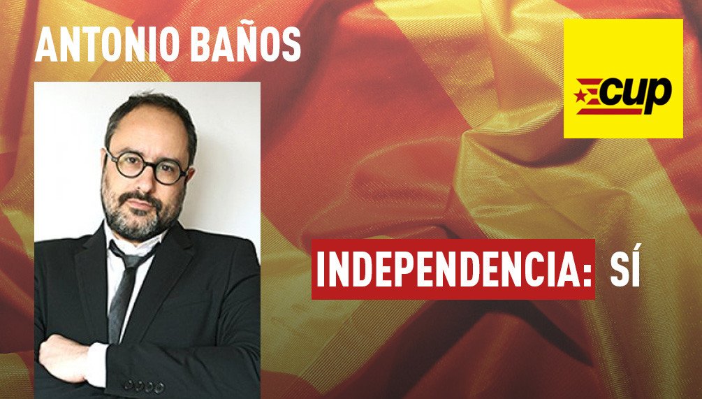 Candidatura d'Unitat Popular (CUP). Otra lista independentista de izquierda, también presente en la Comunidad Valenciana y en las islas Baleares. Socialismo y ecologismo son algunos de los puntos principales de su campaña. El periodista Antonio Baños encabeza la lista. "Vamos a hacer tres cosas: ganar, desobedecer y construir. No tenemos miedo, estamos llenos de esperanza", afirma Baños, citado por 'El País'. Conseguirían el 7,3% de los votos.