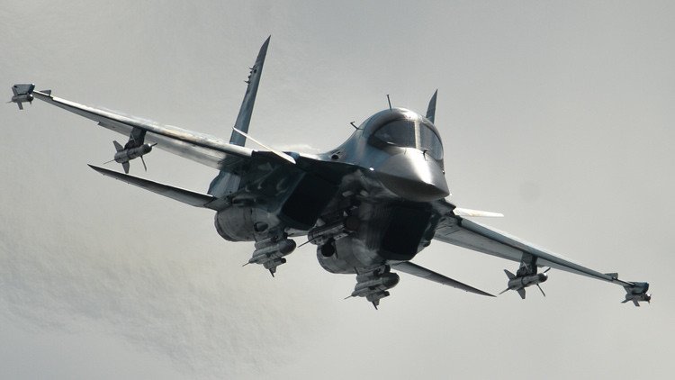 El Su-34 puede portar hasta 8 toneladas de carga útil en 12 puntos de suspensión externa, y además de bombas y misiles de ataque a tierra, dispone de un amplio arsenal para combates aéreos.