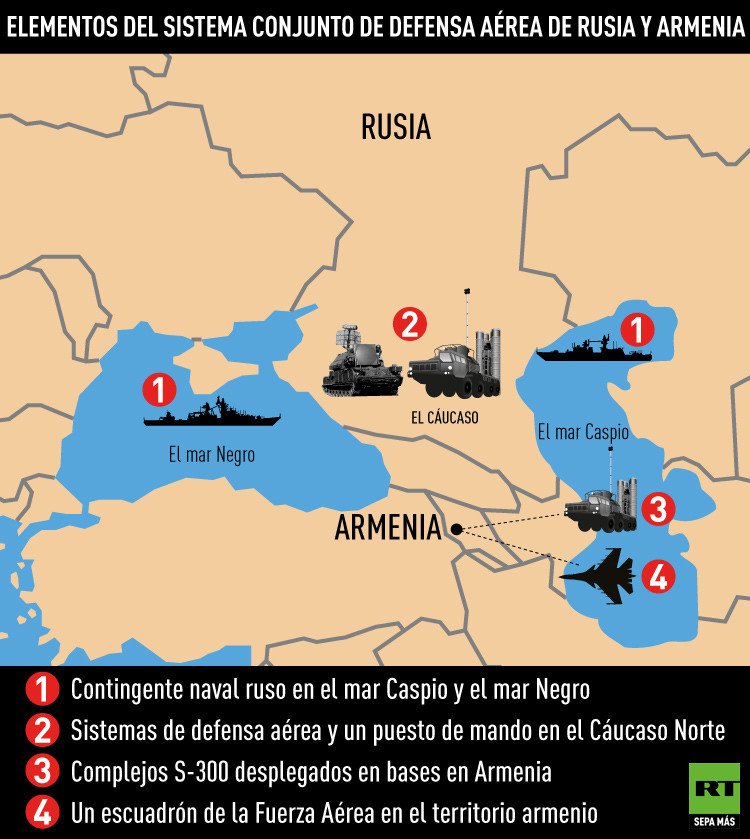 En realidad el sistema de defensa aérea conjunto entre Rusia y Armenia ya está formado, aseguran expertos militares. Elementos del sistema de defensa aérea, complejos S-300 y un escuadrón de la Fuerza Aérea desplegado en la región están integrados en un solo sistema. Por lo tanto, no se trata de la creación del escudo aéreo, sino de su fortalecimiento y desarrollo.