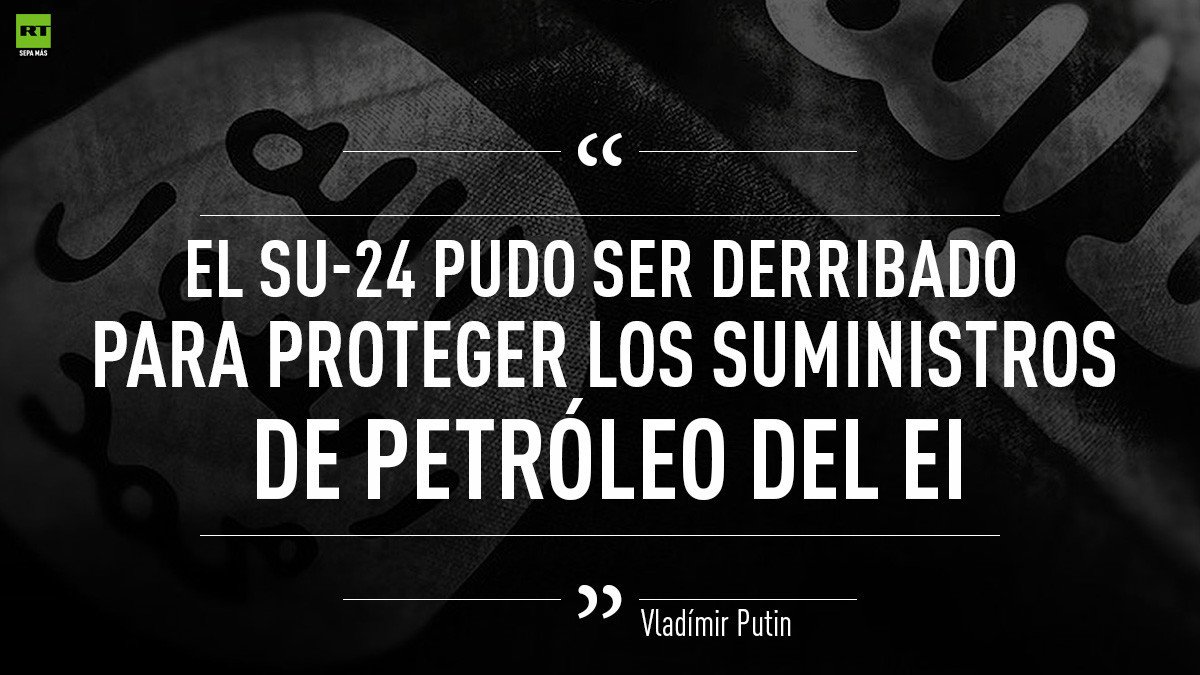 "Tenemos todas las razones para suponer que la decisión sobre el derribo de nuestro avión fue dictada por el deseo de garantizar la seguridad de estas vías de suministro de petróleo al territorio de Turquía, precisamente a los puertos donde es cargado en los petroleros", dijo Putin.