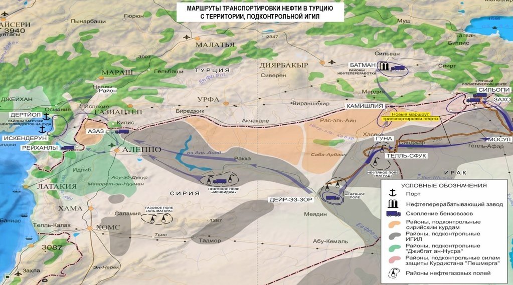 Según informó anteriormente el Ministerio de Defensa ruso, la ruta occidental pasa por la provincia siria de Raqa y finaliza en los puertos turcos de Dortyol y Alejandreta, en el Mediterráneo, mientras que la ruta norte lleva el petróleo al territorio turco desde los campos petrolíferos de la orilla derecha del Éufrates.