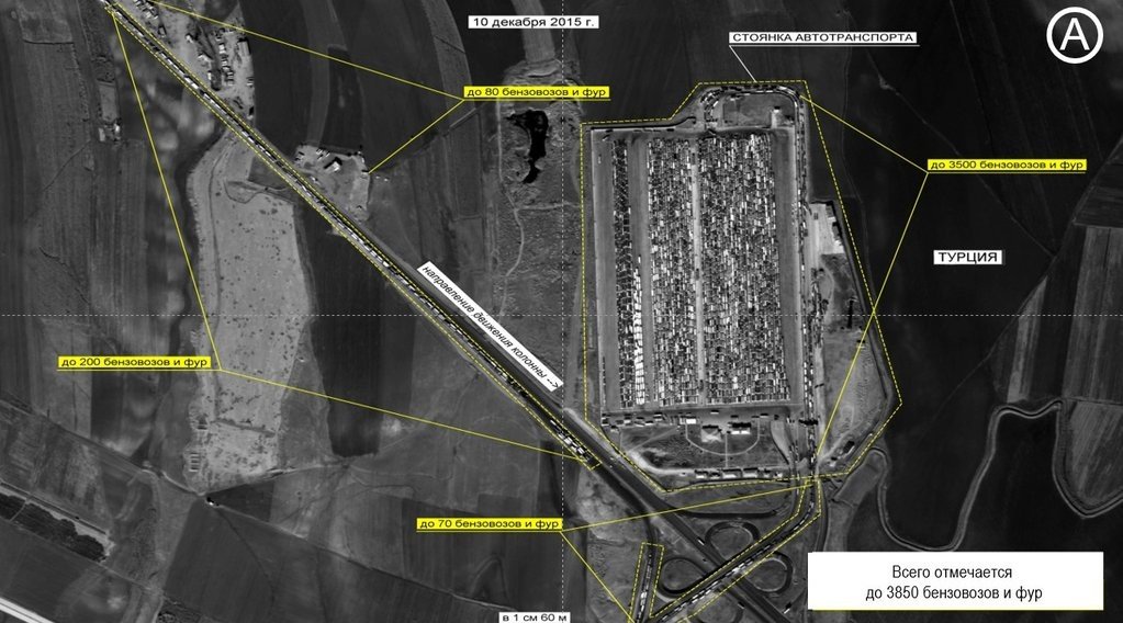 Durante su rueda de prensa Rudskói presentó imágenes grabadas por la inteligencia rusa en las que aparecen casi 12.000 camiones cisterna en el puesto de control fronterizo turco-iraquí cerca de Zajo.