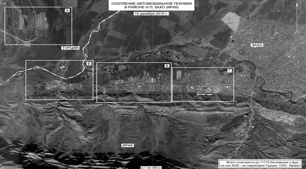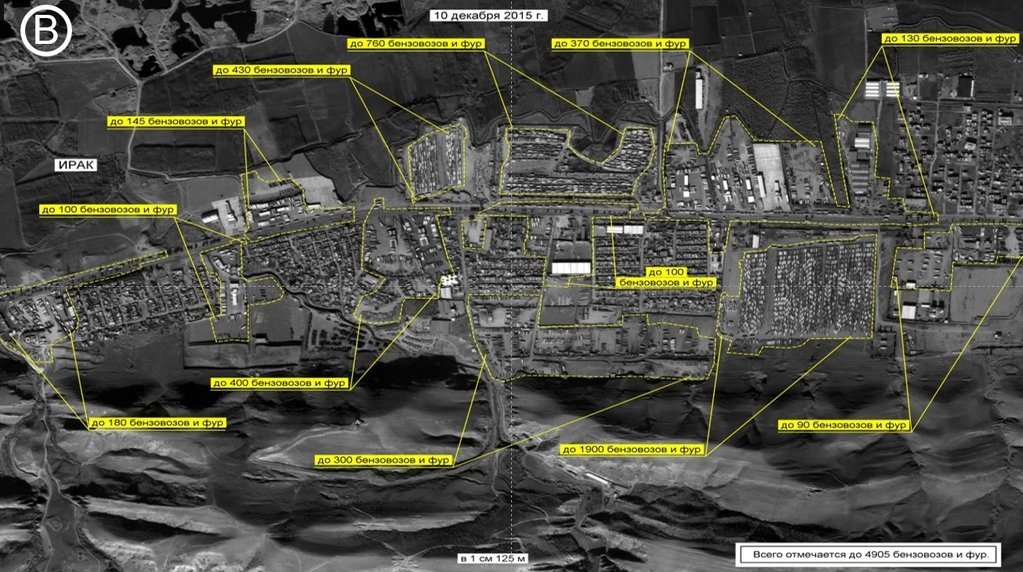 "En el momento de la grabación cerca de Zajo, a ambos lados de la frontera turco-iraquí se detectaron 11.775 camiones cisterna y camiones de carga: 4.530 de ellos en el territorio turco y otros 7.245 en Irak", dijo.