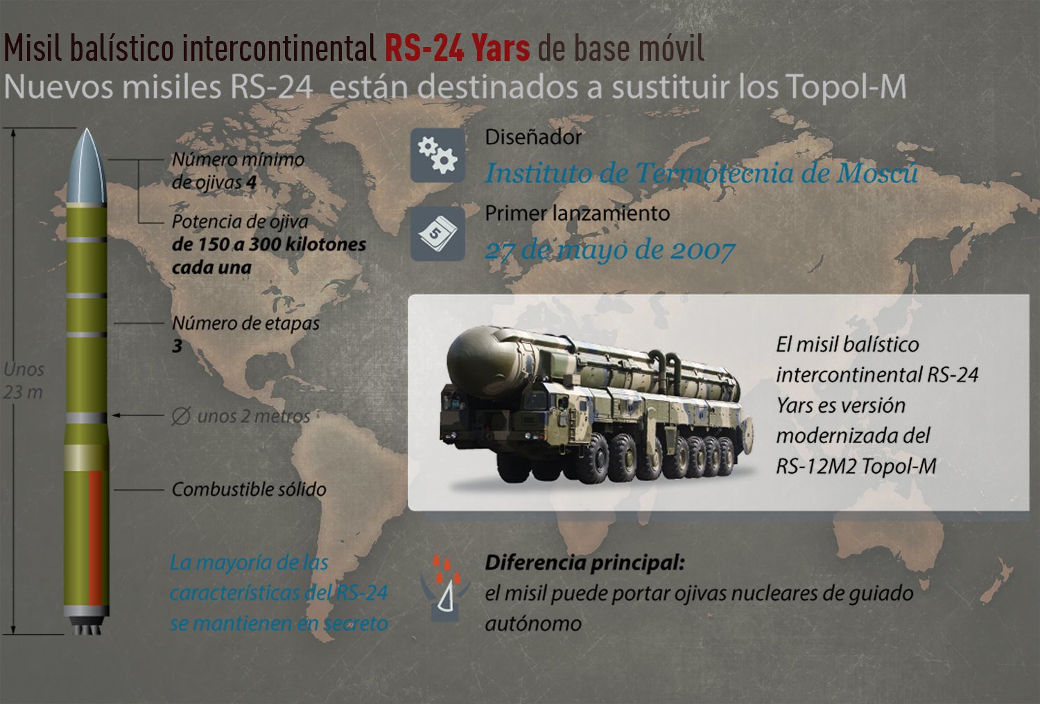 Las Tropas de Misiles de Designación Estratégica recibirán sistemas de misiles balísticos intercontinentales RS-24 Yars basados en plataformas móviles.