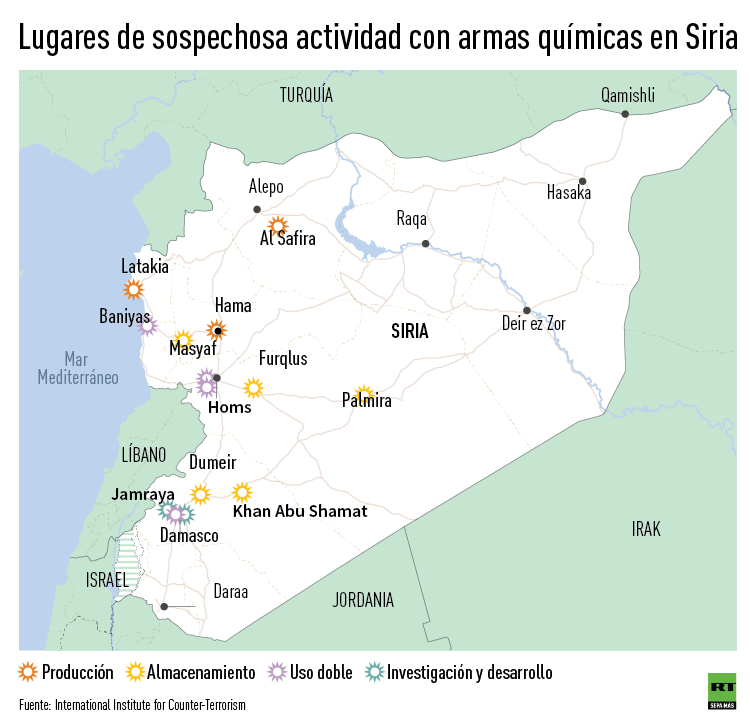 Por su parte, un informe de la Sociedad Médica Sirio-Americana (SAMS, por sus siglas en inglés) confirmó que, desde que comenzó la guerra de Siria en 2011, se han registrado 161 ataques químicos y que el 77 % de esos casos han tenido lugar tras la imposición de un control internacional sobre los arsenales químicos en el país.