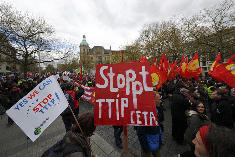 Sus defensores argumentan que el acuerdo sería beneficioso para el crecimiento económico de los países europeos, fomentaría la creación de empleo y aumentaría la libertad económica. Sin embargo, quienes protestan contra el acuerdo afirman que con el tratado aumentaría el poder de las grandes empresas mientras se reducirían los niveles de protección social y medioambiental.