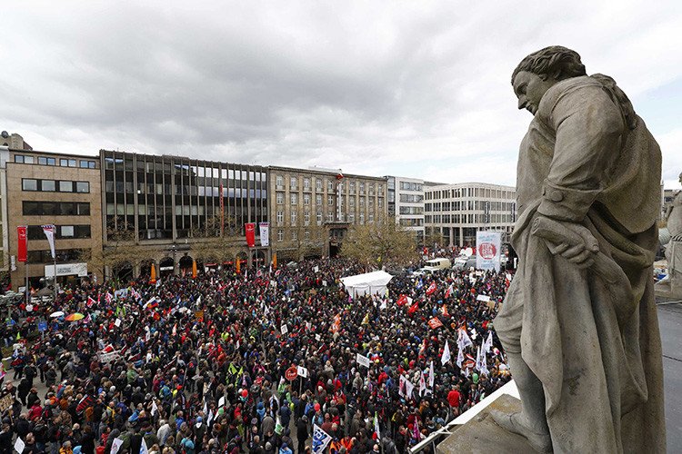 Las protestas en Hannover contra la posible ratificación del TTIP, así como contra el Acuerdo integral de Economía y Comercio (CETA, por sus siglas en inglés), se lleva a cabo por segundo día consecutivo después de que el sábado se reunieran 25.000 personas.