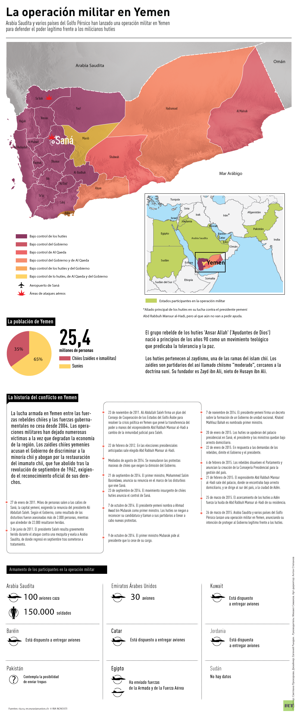 La coalición árabe empezó los ataques contra las posiciones de rebeldes hutíes en el territorio yemení hace más de un año. A partir del pasado 11 de abril, entró en vigor un cese el fuego y actualmente, rebeldes y autoridades, negocian vías para estabilizar la situación.
