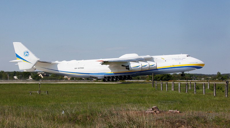 El gigantesco An-225 mide 84 metros de longitud y tiene una envergadura de alas de 88 metros, equivalente al ancho de un campo de futbol. Durante las dos últimas décadas ha estado operando como transportador de cargas grandes y pesadas. Sin cargamento es capaz de permanecer en el aire unas 18 horas, pero con el gran generador a bordo su autonomía de vuelo se reduce a 10 horas.