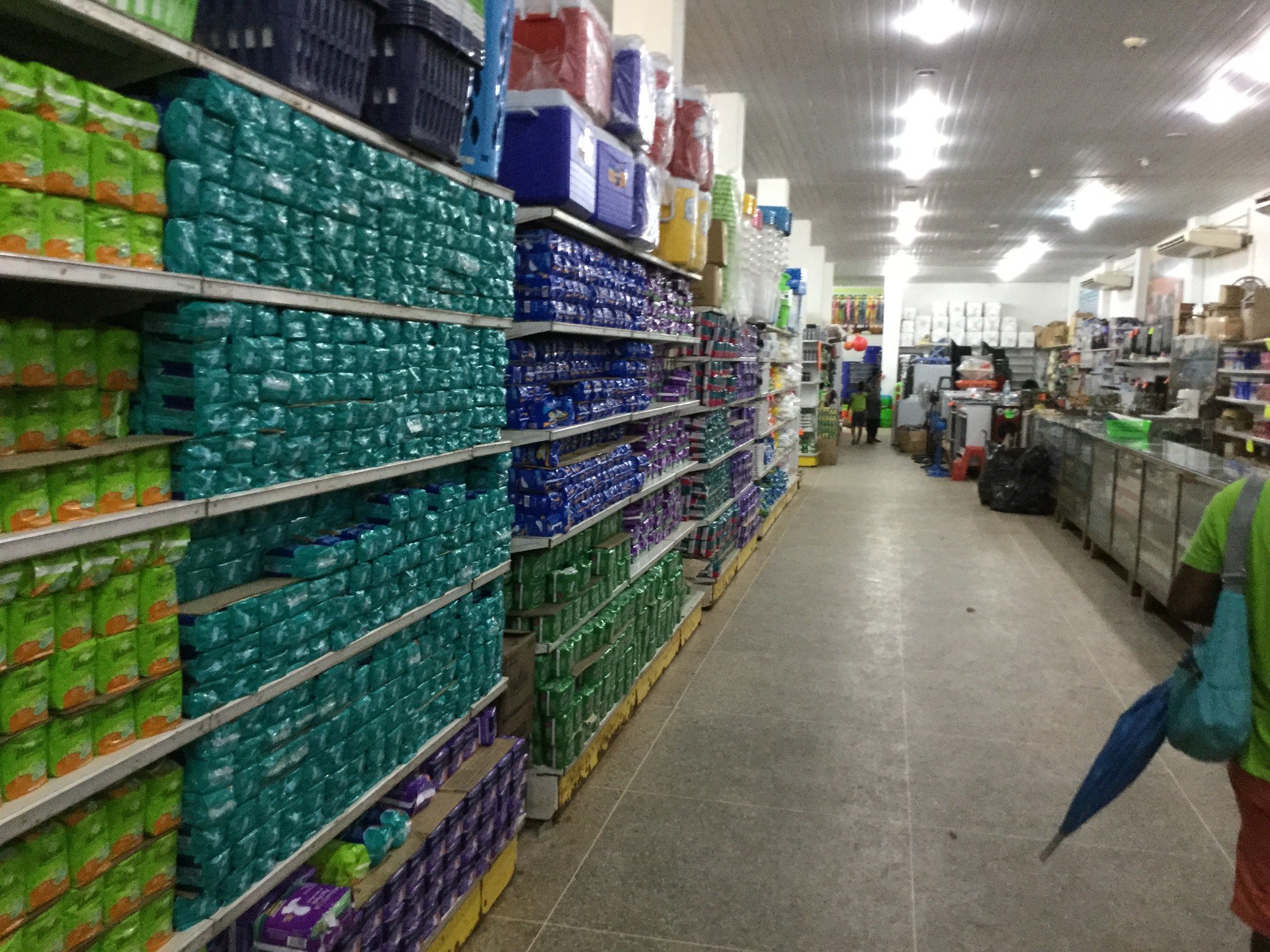 Los maniquíes, pese a sus generosas protuberancias de fibra de vidrio, no tienen tanto protagonismo en los locales de venta de ropa como las cajas de aceite, de harina de maíz o de mantequilla. Ni siquiera los zapatos o los souvenirs con la bandera de Brasil son capaces de eclipsar la convocatoria de los víveres arrumados junto a camisetas, sostenes y pantalones stretch.