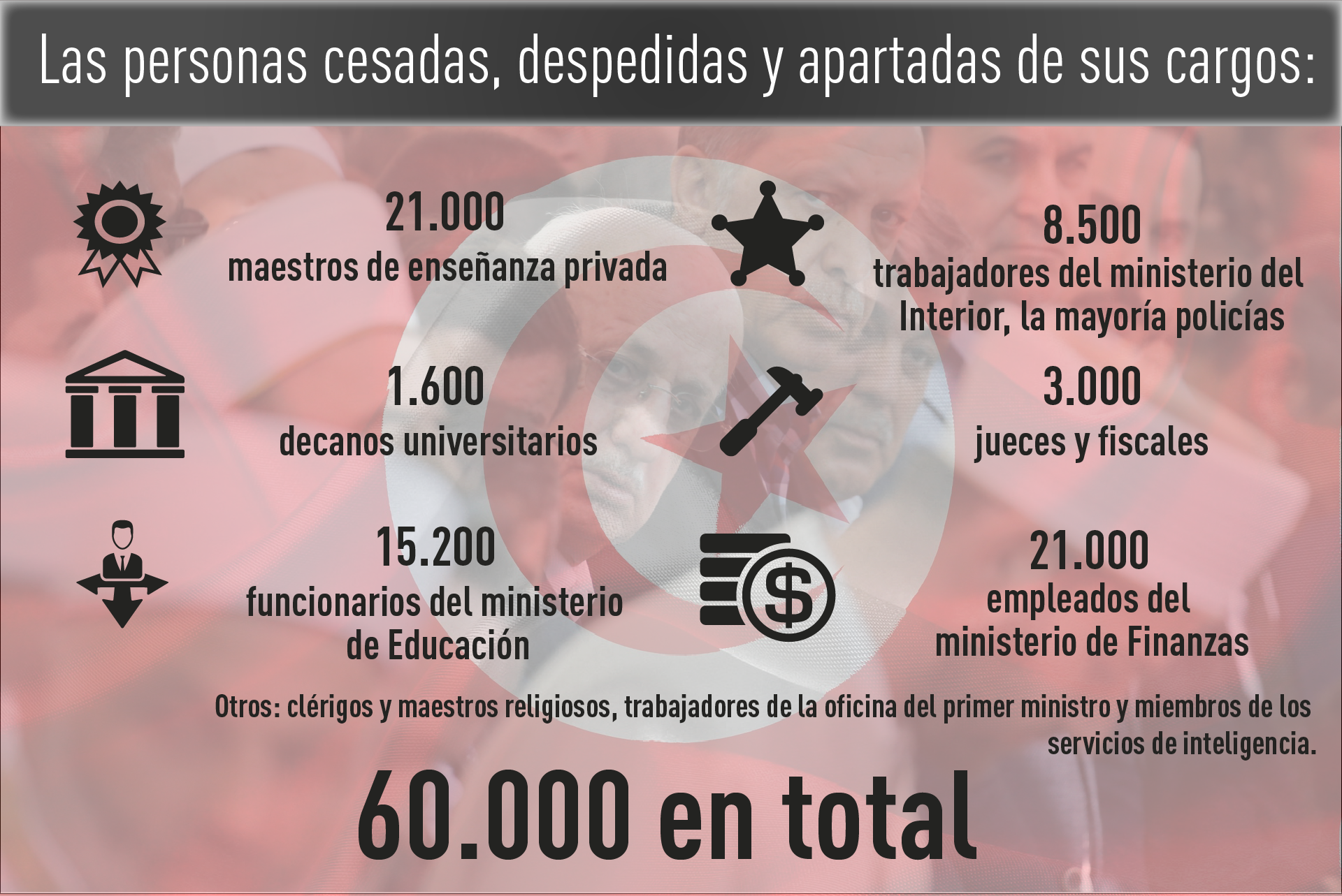 60.000 personas cesadas, despedidas y apartadas de sus cargos
