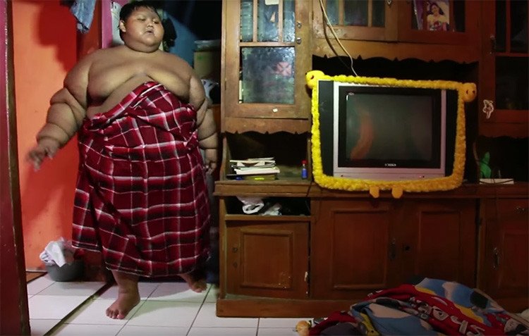 Arya Permana, es considerado como uno de los niños más obesos del mundo. Con solo 10 años de edad, su peso ya alcanza los 191 kilogramos, lo que no le permite caminar por su cuenta para ir a la escuela.