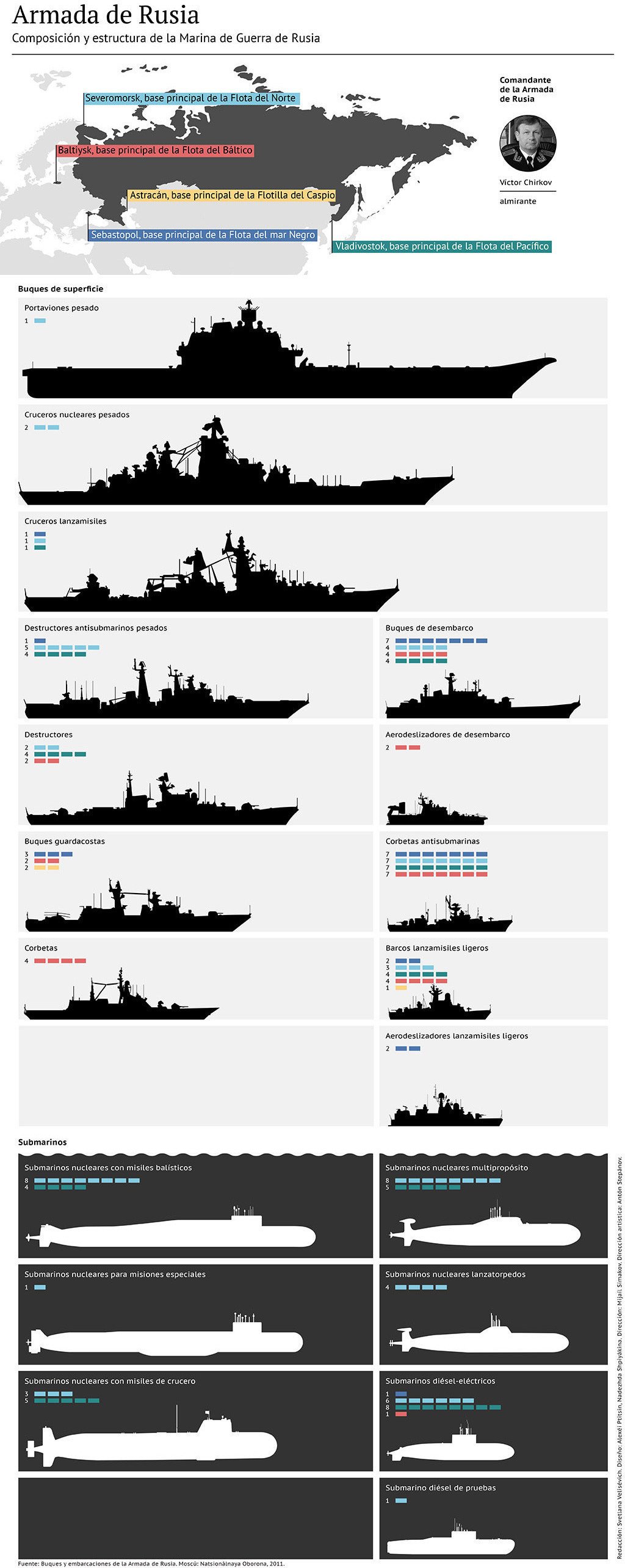 El pesado crucero-portaaviones Admiral Kuznetsov —único de su clase en la Armada rusa— está en servicio activo desde 1991. Desplaza un máximo de 61.390 toneladas y mide 306,45 metros de eslora, 71,96 metros de manga y tiene 10,4 metros de calado. Su velocidad máxima es de 29 nudos, posee una reserva de autonomía de 45 días y cuenta con 1.980 tripulantes.