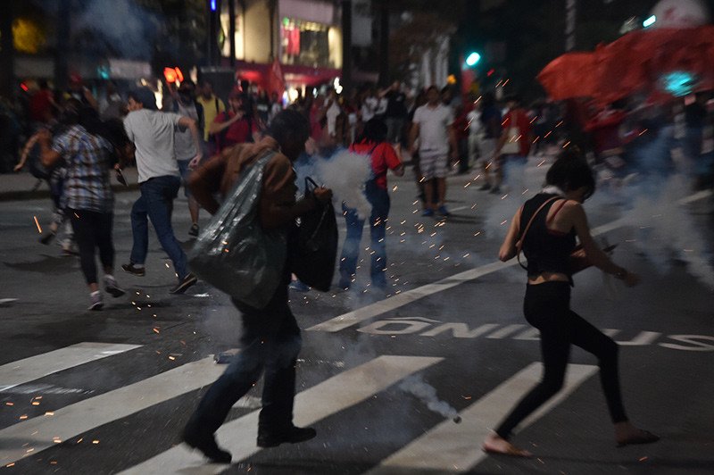 La Policía ha argumentado sus medidas afirmando que los manifestantes decidieron continuar su marcha por un recorrido que no había sido acordado con el cuerpo de seguridad. Varias decenas de personas permanecieron en la avenida Paulista y se negaron a obedecer las directivas de los agentes. Una parte de la calle estaba bloqueada por neumáticos encendidos.