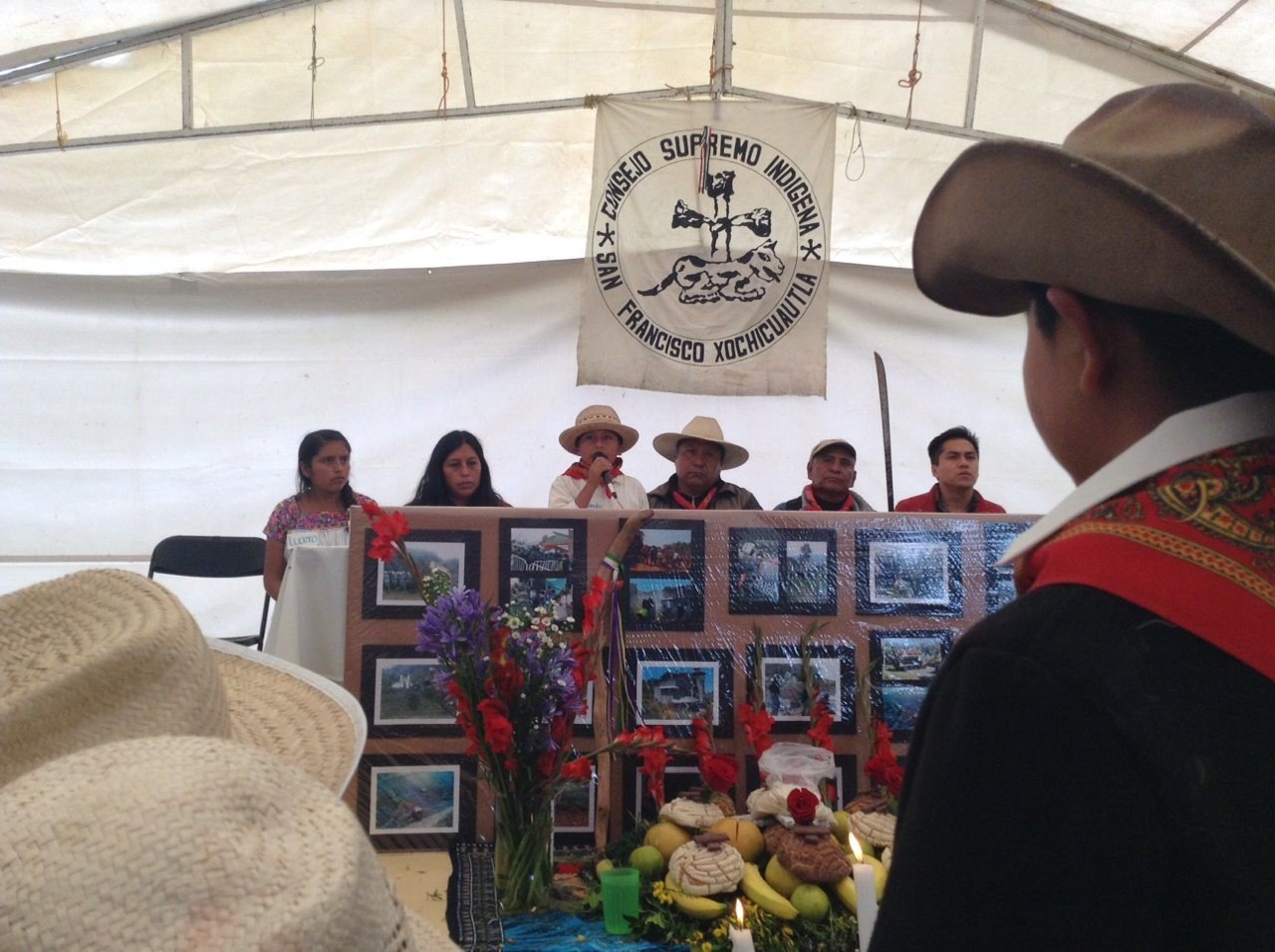 Desde el 2013, cientos de granaderos suben de manera recurrente a las asambleas de comuneros que se desarrollan en Xochicuautla. Los enormes camiones de policía se estacionan en el campo de futbol, al lado de la escuela. A partir de octubre del 2014, maquinaria comenzó a talar árboles en la comunidad, a remover la tierra, y en 2016 comenzaron a derribar casas. La última era del delegado otomí de la comunidad, Armando García.