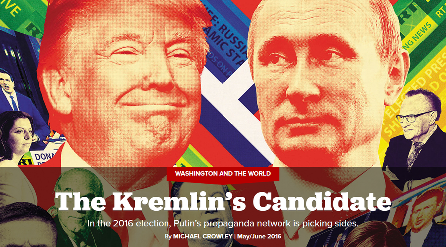 El candidato republicano Donald Trump ha repetido en numerosas ocasiones que podría llevarse bien con Vladímir Putin, aunque ha subrayado también que no conoce al presidente de Rusia y no sabe qué pasará en el futuro. Sus declaraciones, en las que se mostró a favor de mejorar las relaciones con Rusia y criticó a la Administración de Obama por no negociar con Putin, generaron acusaciones en su contra debido a sus presuntos vínculos con el Kremlin.