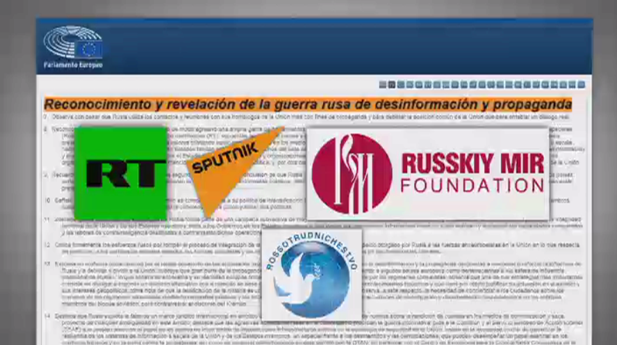 Este martes, el Parlamento europeo debate lo que la cámara considera "propaganda y desinformación" procedente de Rusia antes de la votación sobre la cuestión prevista para el próximo miércoles. El documento que está siendo estudiado por los eurodiputados se titula 'Propuesta de resolución sobre la comunicación estratégica de la Unión para contrarrestar la propaganda de terceros en su contra'. En el texto se menciona a la cadena televisiva RT, la agencia Sputnik, la fundación Russkiy Mir y la agencia de cooperación cultural rusa Rossotrúdnichestvo.