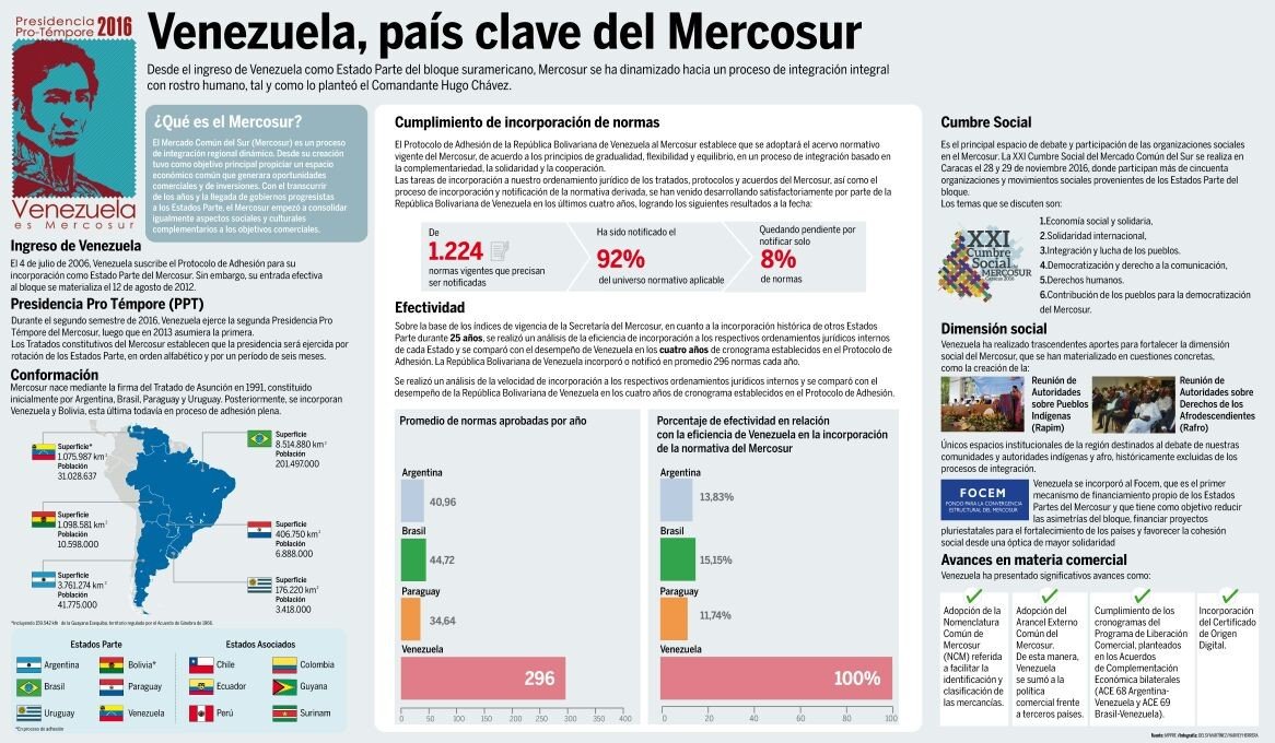 La cancillería presentó un gráfico que compara la velocidad de adopción de la legislación común: mientras Venezuela adoptó un promedio de 296 normas de Mercosur por año, Argentina incorporó 41; Brasil, 45; y Paraguay, 34.