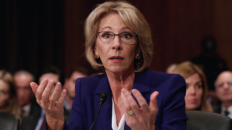 Cita: "Estoy muy emocionada de empezar a trabajar y hablar sobre mis pensamientos e ideas para hacer la educación estadounidense grande de nuevo. El 'statu quo' no es aceptable. Me comprometo a transformar nuestro sistema educativo en el mejor del mundo".
