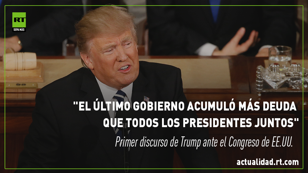 En su primer discurso ante el Congreso de Estados Unidos, Donald Trump ha ofrecido "un nuevo impulso de optimismo". El mandatario ha recordado que "dentro de nueve años, EE.UU. celebrará el 250.º aniversario de su Declaración de Independencia" y se ha preguntado: "¿Qué país habremos dejado a nuestros hijos?".