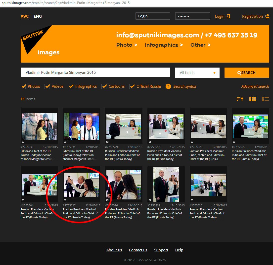 Según Shaheen, la instantánea formó parte de "un informe desclasificado de la Inteligencia" norteamericana y presuntamente fue realizada mientras Simonián "informaba a Putin sobre las instalaciones de RT". Shaheen sostuvo ante los senadores que "los empleados de RT son elegidos por el propio Kremlin, que controla la cobertura, incluida la desinformación y noticias falsas".