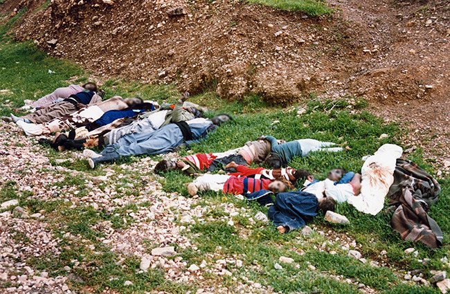 Si nos remontamos a la guerra entre Irán e Irak (1980-1988) encontramos de nuevo al ejército de los EE.UU involucrado en una masacre perpetrada con agentes químicos letales.  El 16 marzo de 1988, Irak llevó a cabo un ataque con gases nerviosos contra la ciudad de Halabja, controlada en esos momentos por tropas iraníes y guerrillas kurdas aliadas con Teherán.