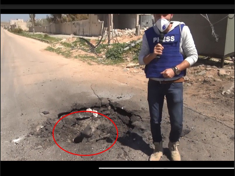 Además, un cráter formado en el lugar del ataque no es resultado de un misil lanzado, sino de un explosivo que ya estaba ahí.