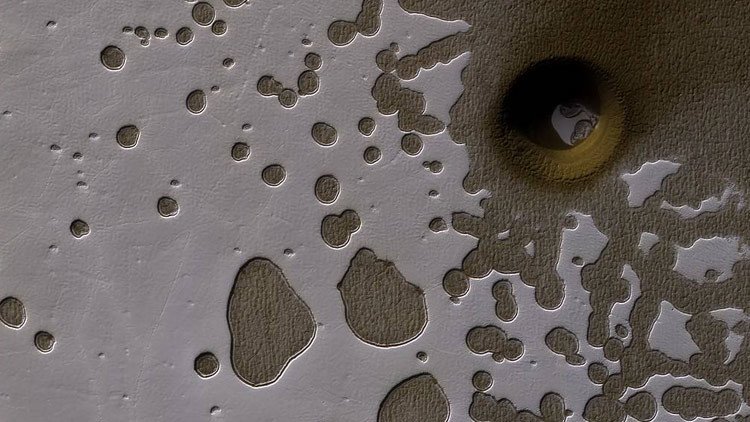 De acuerdo con los científicos, muchas cosas pueden hacer agujeros en el terreno rocoso de Marte. Así, más de medio millón de impactos de meteoritos han dejado cráteres, tubos de lava han creado pozos profundos, antiguas inundaciones han arrancado abismos gigantes y la actividad volcánica ha derretido el hielo para dejar embudos a la vista.