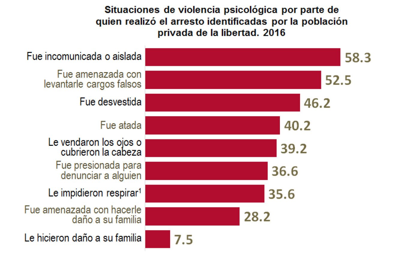 La Enpol reveló que en la mayoría de las detenciones, tres de cada 10 internos sufrieron violencia sicológica, además de que se les mantuvo incomunicados o aislados, hubo amenazas para inventar cargos o lastimar a sus familias, entre otras.