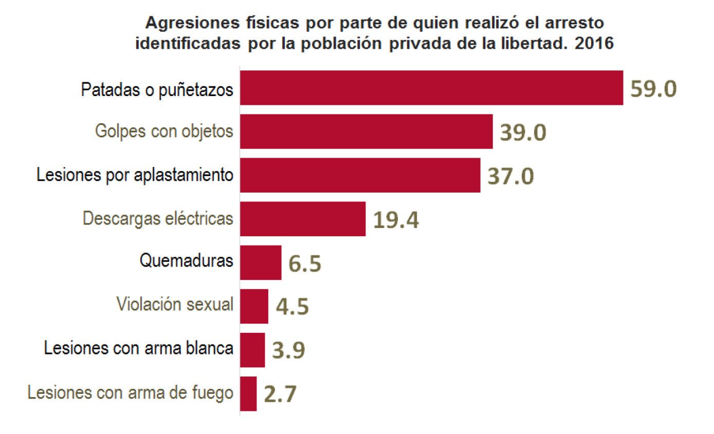El Instituto Nacional de Estadística y Geografía (Inegi) de México informó que durante el año 2016 del total de la población que se encuentra presa, al menos el 24,3% recibió amenazas o presiones para declararse culpable.