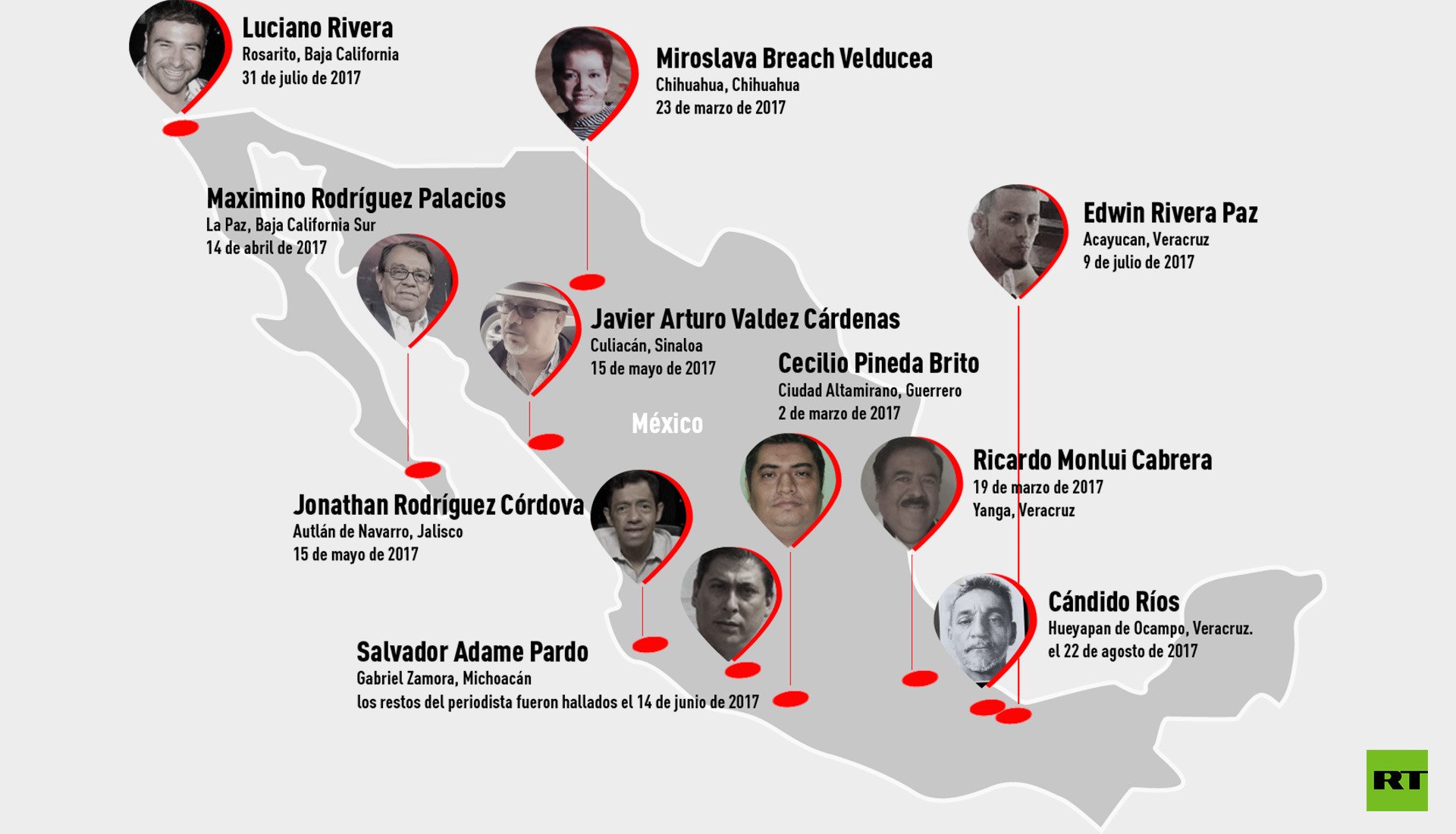 A continuación, RT hace el recuento de los asesinatos de periodistas mexicanos en lo que va del año 2017.