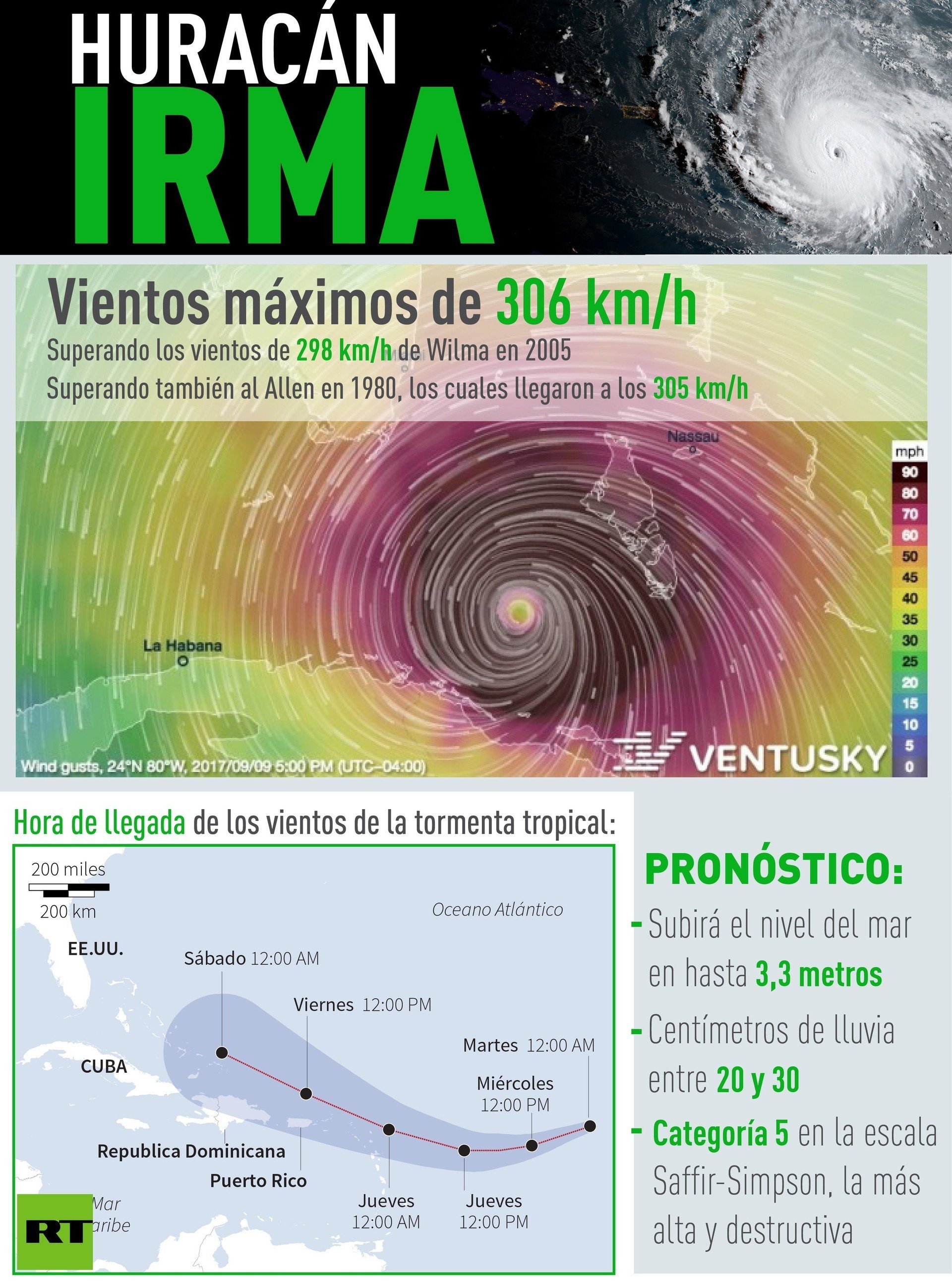 Se espera un gran impacto en la península y en los Cayos de Florida, según el Centro Nacional de Huracanes.
