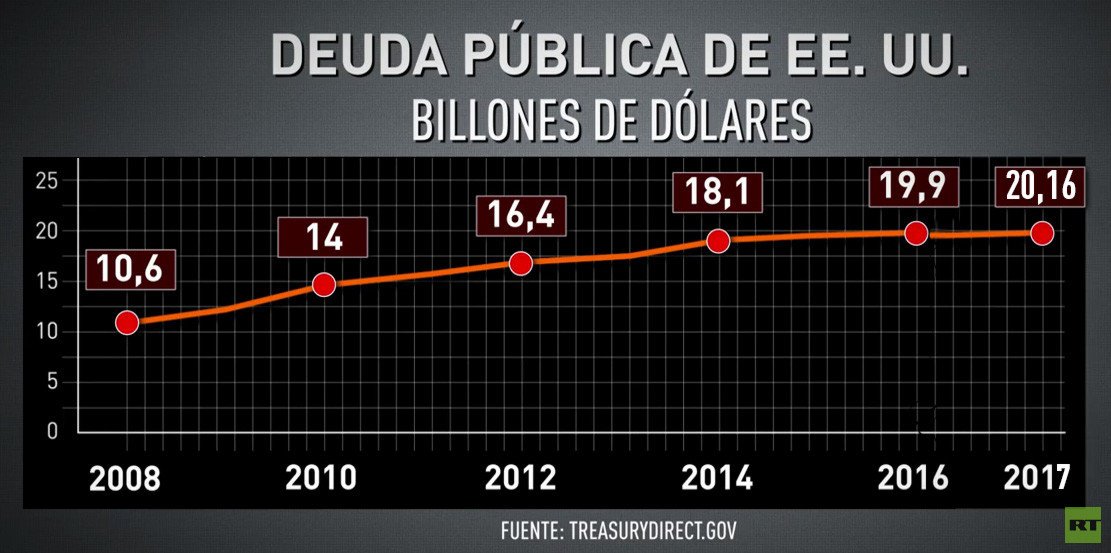 En los últimos años, el pasivo norteamericano ha experimentado un paulatino incremento, de los 10,6 billones de 2008 a los 19,9 billones de 2016, un 87,7%.