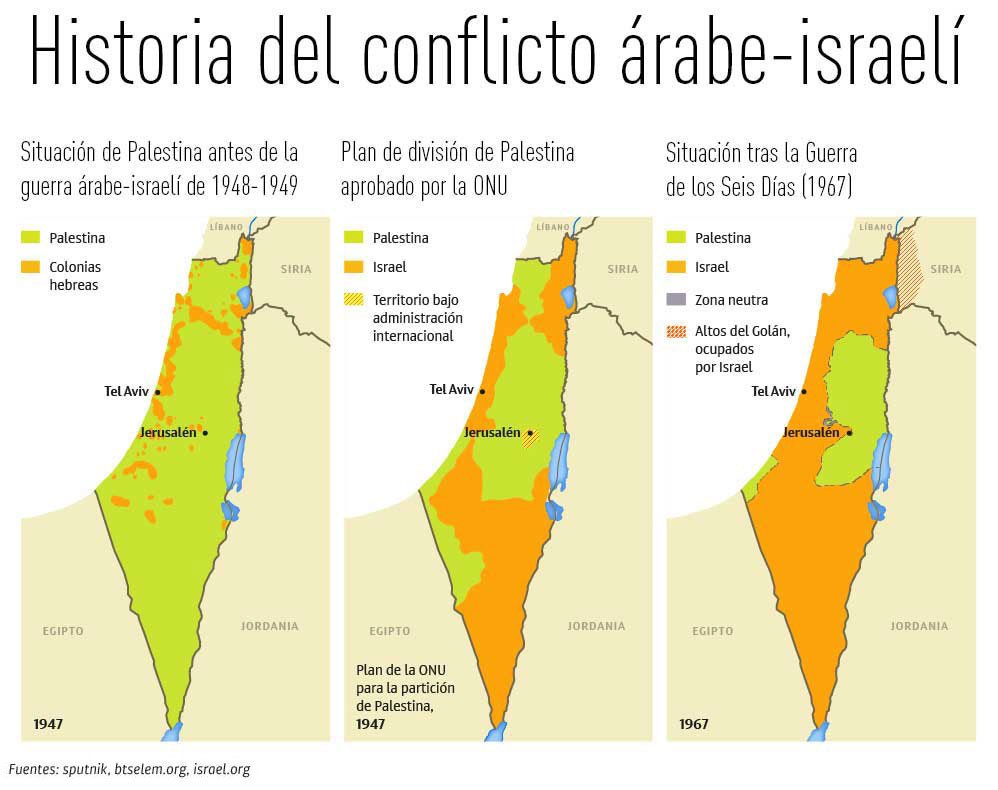 En diciembre de 1947, la Asamblea General de la ONU aprobó, pese al rechazo de los árabes, el plan de división de Palestina, entonces bajo mandato británico. Este plan preveía la creación de dos Estados independientes, uno árabe y el otro judío, y una zona internacional en Jerusalén bajo control de las Naciones Unidas.