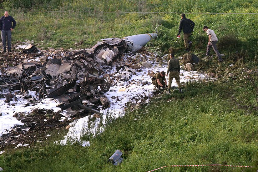 Photos of the Israeli jet crash landing site in Northern Israeli after pilots ejected from aircraft following attack from Syria early this morning. pic.twitter.com/h4w8H2g1qa