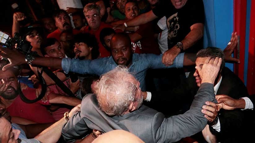 En un primer intento Lula no logró abandonar las inmediaciones del sindicato. Sus seguidores no querían que se entregara a las autoridades e impidieron el paso de su vehículo. Finalmente, el expresidente de Brasil salió del sindicato sin auto, rodeado de una multitud de seguidores, que lo llevaron en andas antes de que se entregara.