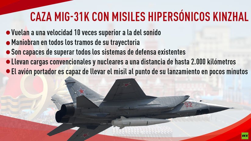 En el cielo de Moscú aparecerán los mejorados cazas-interceptores MiG-31K, equipados con misiles hipersónicos aerobalísticos del nuevo sistema aéreo Kinzhal (Daga).