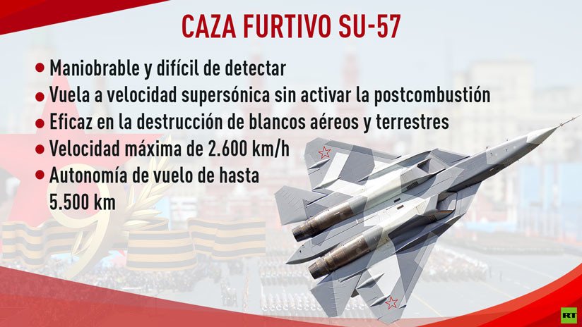 La mayor parte de la información sobre el Su-57 se mantiene hasta ahora en secreto, por lo que solo se conocen las características aproximadas de la aeronave. Así, se sabe que el caza puede alcanzar una velocidad de hasta 2.600 kilómetros por hora y que tiene una autonomía de vuelo máxima de 5.500 kilómetros. La aeronave realizó su primer vuelo en 2010 y este año empezó a realizar vuelos equipado con armas de nueva generación.