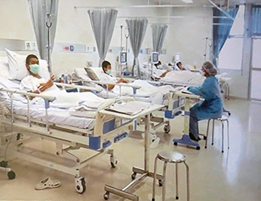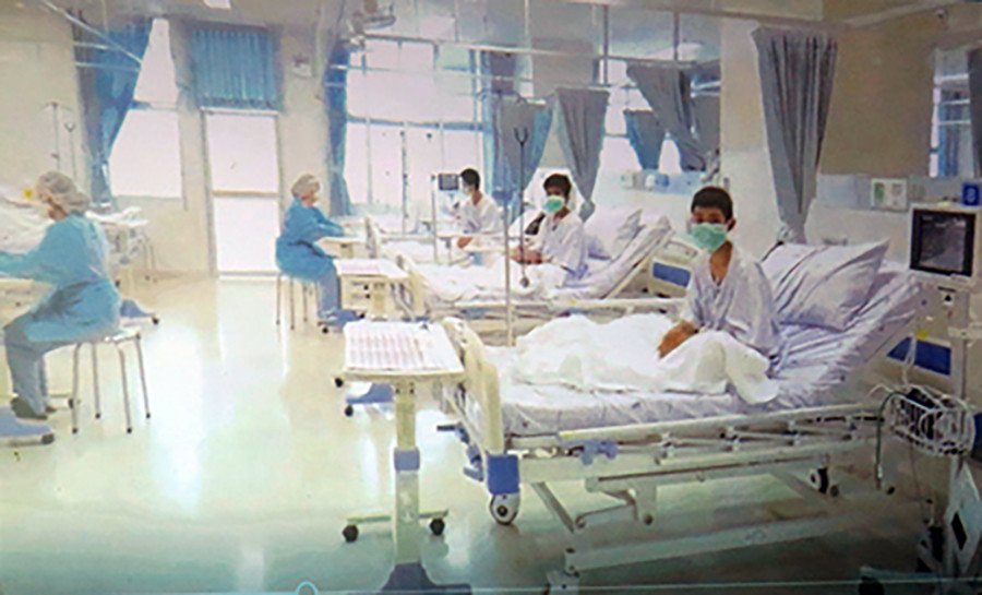 The Thai government broadcasts a video of the Wild Boar soccer team being treated at the local hospital. Physically and mentally fine ✌🏼#ThailandCaveResue#ThamLuangCave#13ชีวิตต้องรอด#หมูป่ากลับบ้าน 🐗 pic.twitter.com/5EF5cHsoNL