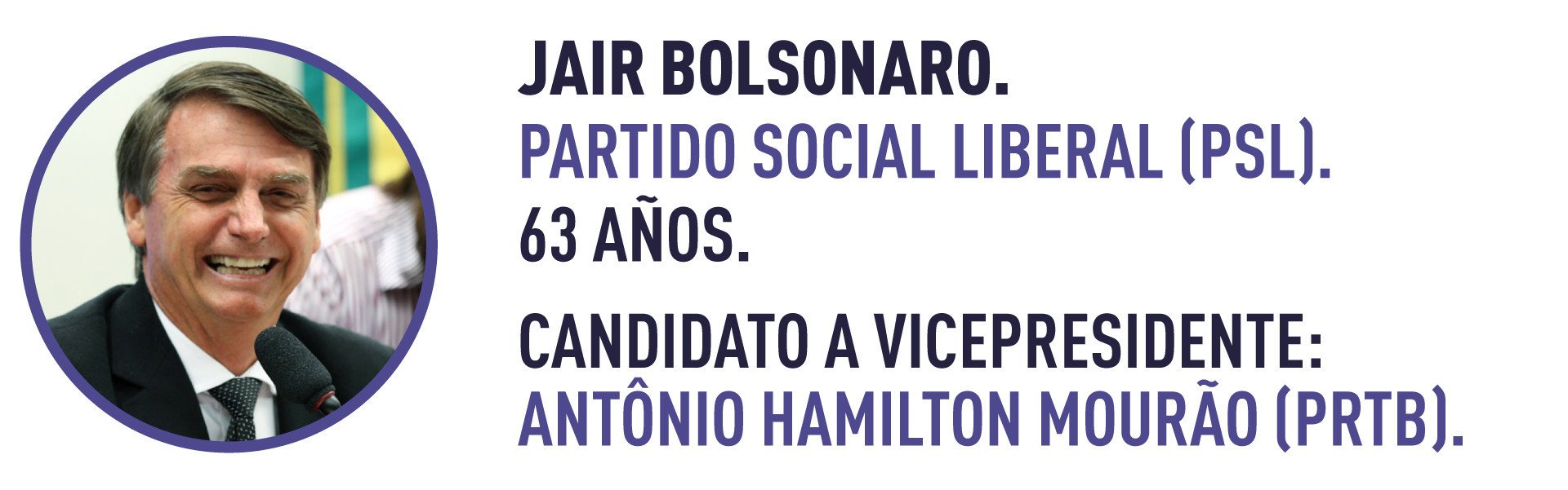 El político de 63 años representa a Río de Janeiro como diputado federal desde 1991. Su ascenso como candidato ocurrió en un ambiente contaminado por las denuncias de corrupción que involucran a figuras de partidos tradicionales de su país, especialmente tras el escándalo de Lava Jato, por lo que su discurso de "mano dura" convoca a buena parte del electorado.