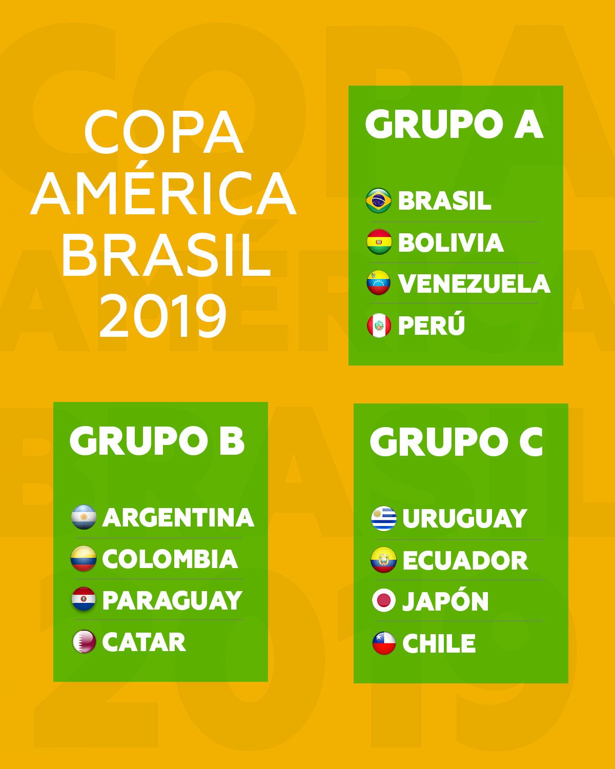 Los grupos de la Copa América 2019, que se celebrará en Brasil entre el 14 de junio y el 7 de julio, han sido sorteados en Río de Janeiro esta jornada.