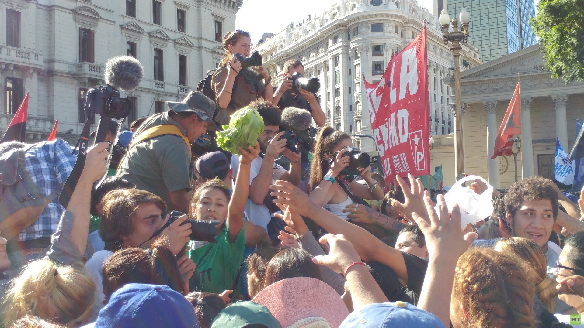 "Ese día la Policía nos disparó con balas de goma y utilizó gas pimienta contra nuestras compañeras. Todo por regalar vegetales en una plaza pública con una pequeña cantidad de gente", detalló Irribarri, en diálogo con RT.